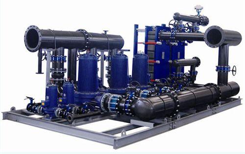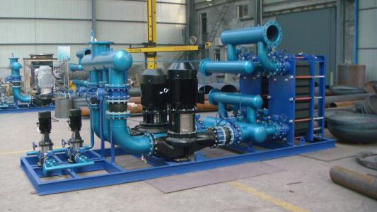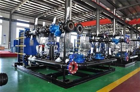 什么是换热机组? 换热机组是由换热器、温控阀组、疏水阀组(热媒为蒸汽时)循环泵、电控柜、底座、管路、阀门、仪表等组成的一个完整的热交换站。